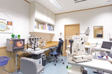 瞳孔の奥にある眼底を観察する眼科機器です。眼底の血管、網膜、視神経などの目の病気を調べるときに行ないます。(当院は3台体制で行っています。) 蛍光造影眼底検査もこの器械を使って行います。